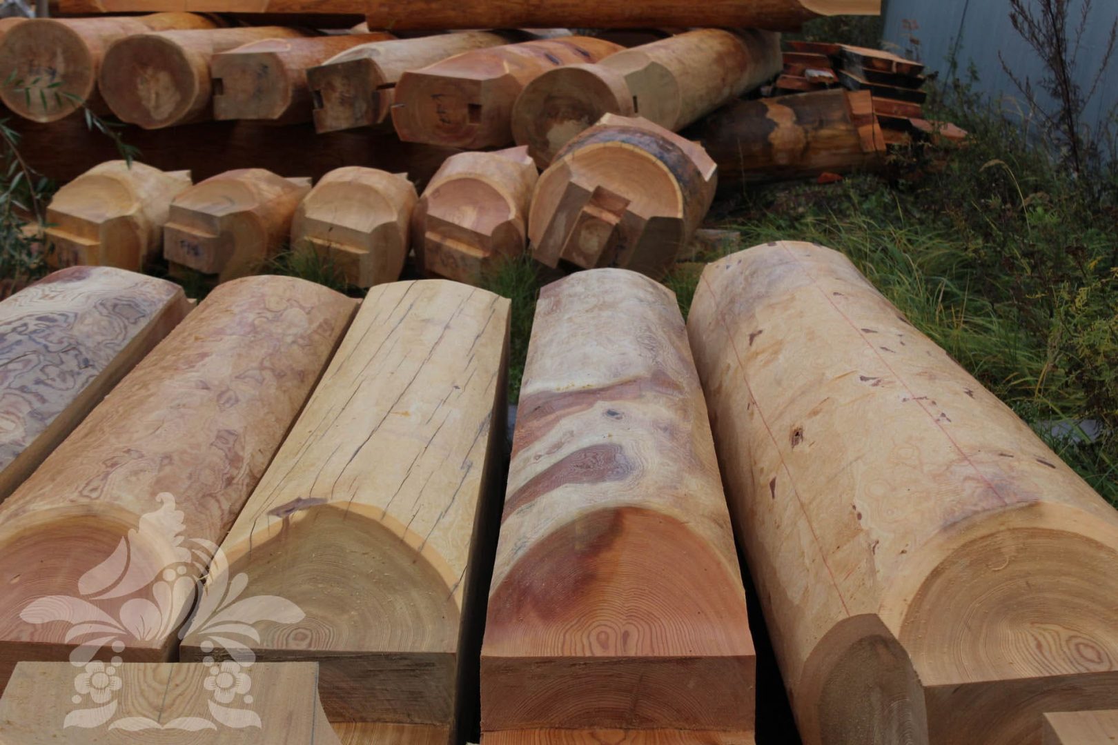 Кедр для наших срубов заготавливается в пойме реки Обь. Лиственница так же родом из Сибири. На европейской территории России не произрастают подходящие по качеству и диаметрам лесоматериалы данных пород. Только сосна и ель, уступающие кедру по визуальным и физическим характеристикам, более существенно проигрывающие Сибирской лиственнице.